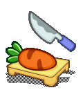为了做美味料理而准备了胡萝卜的菜板和菜刀